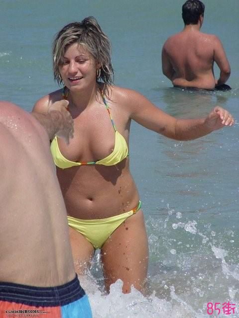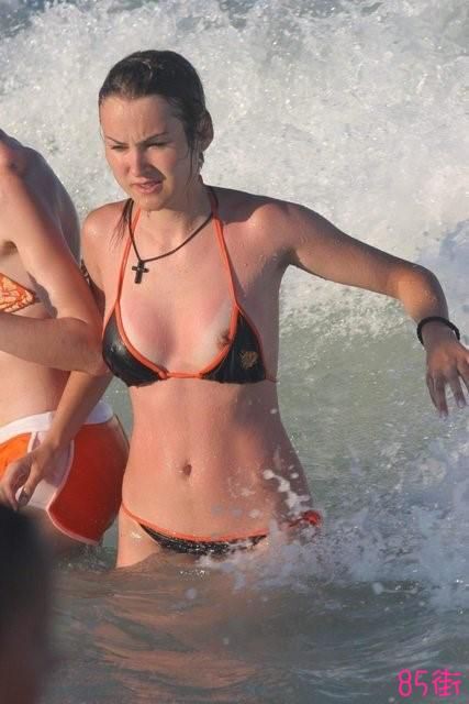国外沙滩比基尼走光秀